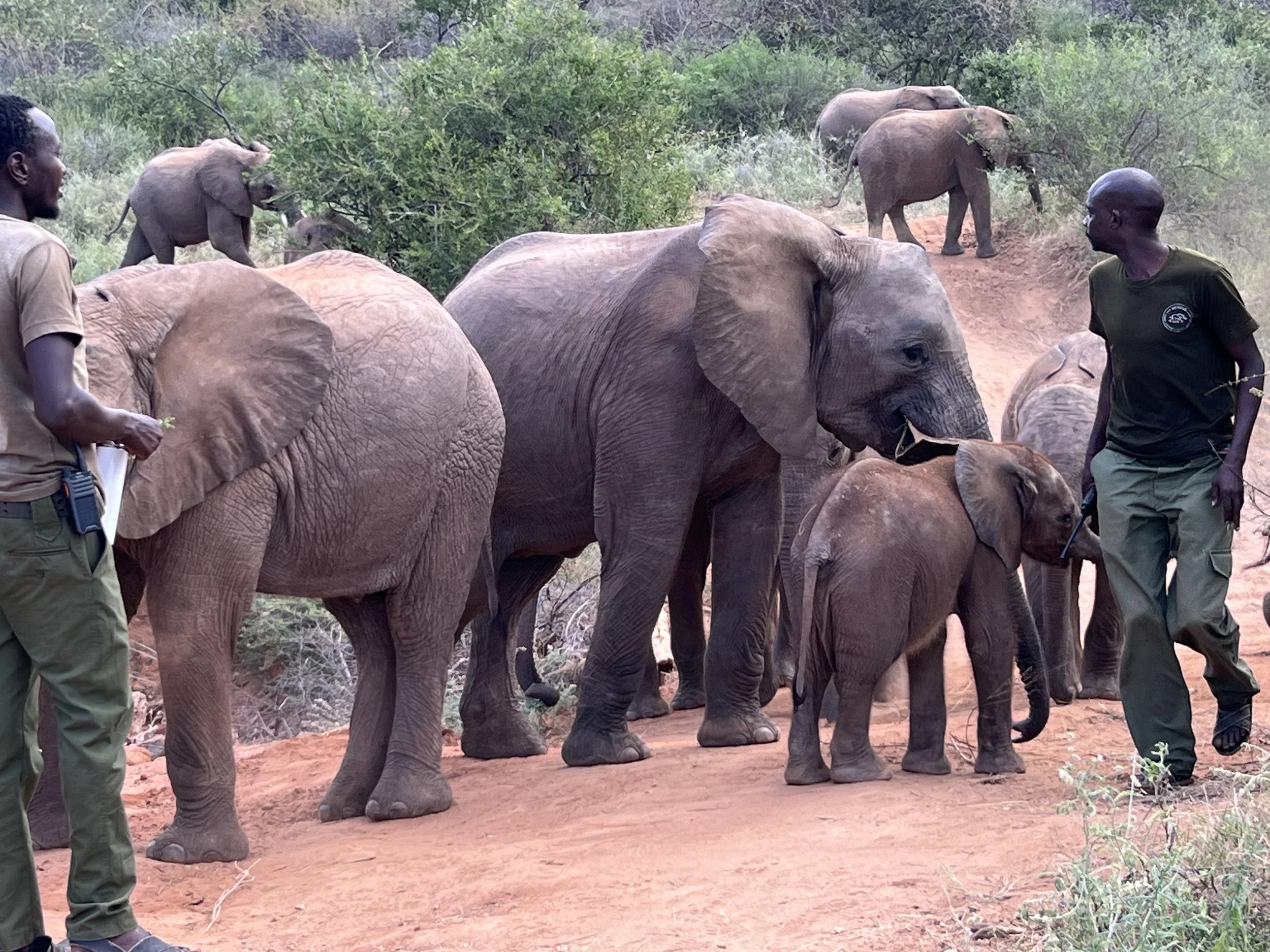 Reteti staff brings in the baby elephants for dinner. There are no fences; they do not leave home.